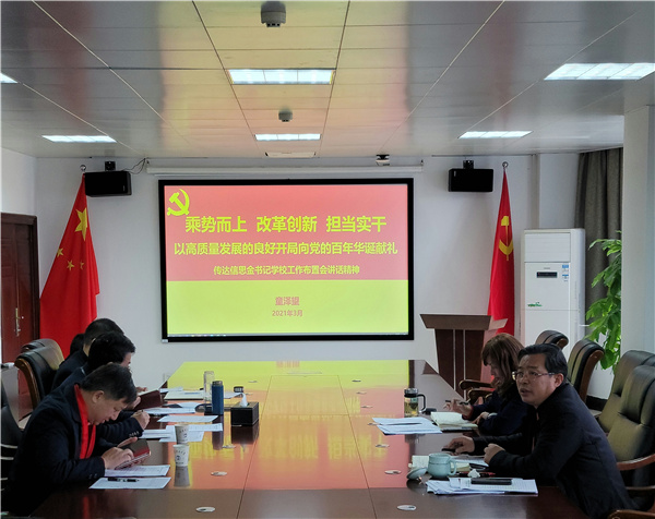 童泽望书记领学了信思金书记在学校工作布置会上的讲话精神。童书记要求学院领导班子务必认真学习领会、深入贯彻落实信书记的讲话精神,围绕学校的改革目标任务和学院“十四五”发展目标要敢打硬仗、敢啃硬骨头,对标对表学校“十四五”规划的各项工作指标,注重过程抓落实、加强督导抓落实,要把完成指标的好与坏作为检验领导班子是否有作为的重要考核指标。童书记强调,绝对不能在工作中仅仅以通知代替贯彻落实,要有推进措施、要有完成任务的时间表、路线图和责任人,针对学院党委今年部署的重点工作和标志性工作要做到四个“加强”:加强指导、加强跟踪、加强检查、加强服务,通过建立、完善基层调研方案和制度体系、督导体系,促进党建工作与业务工作有效融合,发挥党支部活力,顺利推进学院“十四五”的各项指标高质量完成。结合学习内容,童书记对领导班子成员提出三点要求:一是提高站位,服务学校和学院中心工作,全力支持学校的改革任务,领导干部要加强示范引领,带头推进落实各项工作;二是狠抓落实,聚焦工作目标、推进措施和指导检查三个环节,加大过程管理的服务、指导和检查;三是加强考核,倒逼工作推进,通过完善学院考核体系,对完成落实工作情况进行全面考核和通报,形成人人关心学院发展、团结奋进实干、爱院荣院助院的文化氛围。