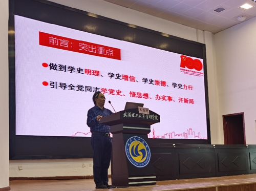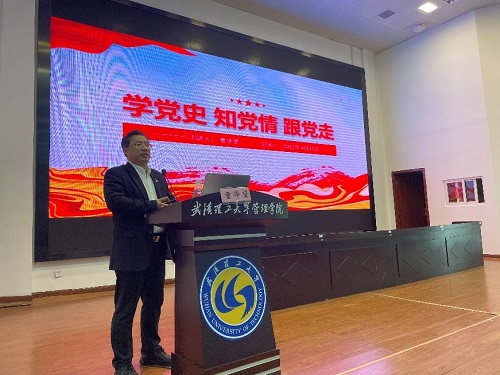管理学院童泽望书记以“学党史、知党情、跟党走”的主题,阐述了为什么学党史和党史学习的重要意义,详细讲述了改革开放和现代化建设新阶段、中国特色社会主义进入新时代的历史,鼓励学员们学党史、强信念,从百年党史中汲取智慧和力量,努力通过党组织的考验。