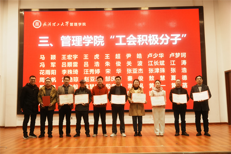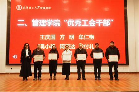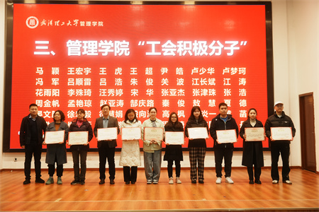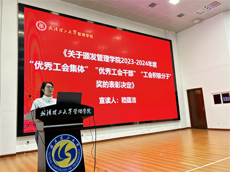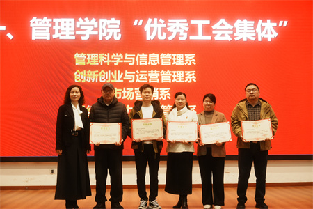 会上,嵇蕴洁副院长宣读了《关于颁发管理学院2023-2024年度“优秀工会集体”“优秀工会干部”“工会积极分子”奖的表彰决定》,表彰学院在过去一年中涌现出的优秀集体和个人,激励和动员广大教职员工创优争先,全力推动高质量高水平学院建设取得新成效。