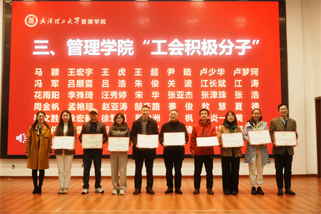王超副院长、张光磊副院长、嵇蕴洁副院长和张冰副书记分别为43位获奖代表颁发管理学院“工会积极分子奖”。
