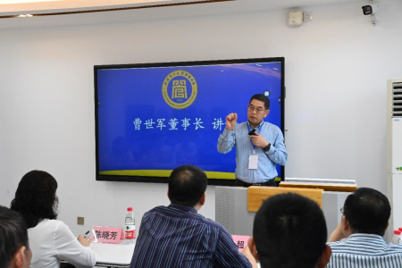 曹世军董事长代表深圳市华舟海洋股份有限公司讲话。他对学院领导在培训班筹备过程中妥善细心周到的安排表示感谢。他表示,希望借助武汉理工大学管理学院的师资力量提高船长和轮机长的管理技能,增强团队合作和沟通能力,助力公司事业发展迈上新台阶。