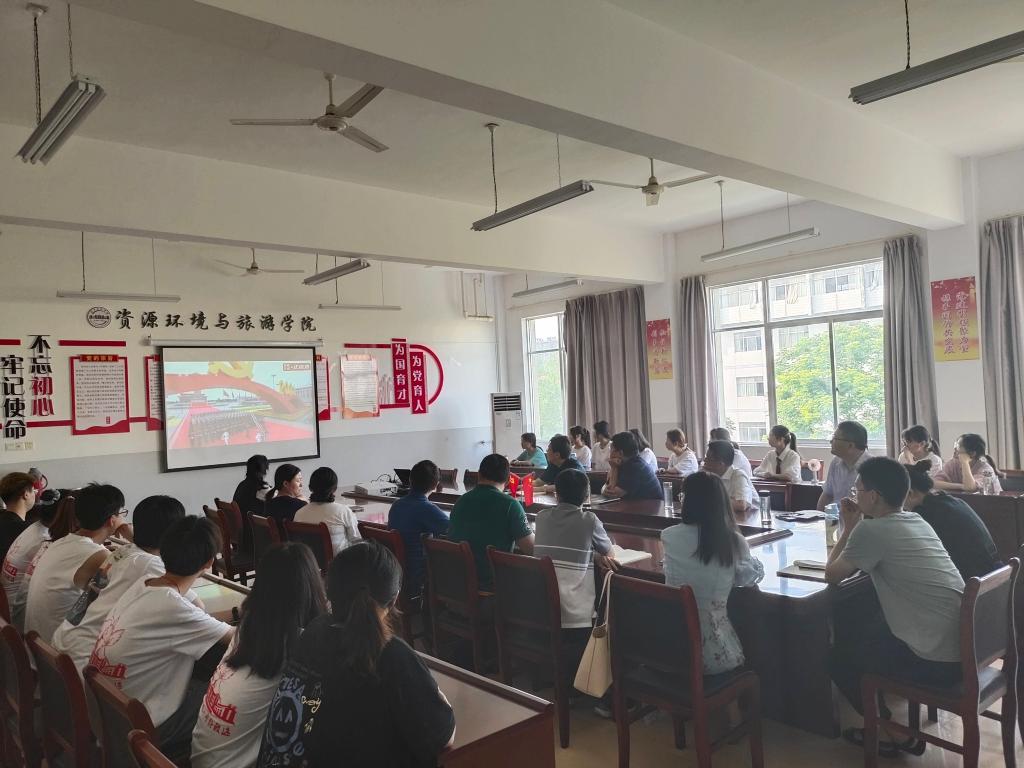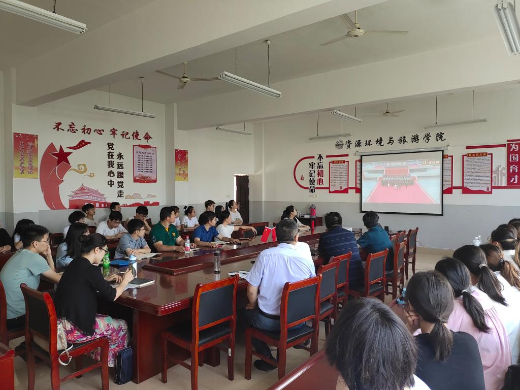 7月1日下午2:00,资环学院党委组织全体教、职工师开展“庆祝建党100周年”专题党日活动:教师代表谈观看建党100周年感受、开展党史学习教育知识竞赛、集中观看《古田军号》。