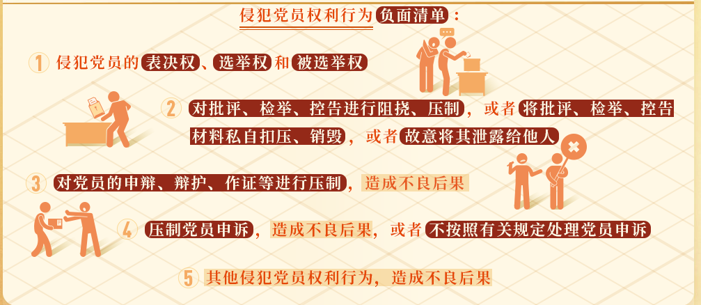 党员权利是党章赋予的。党组织和党员、干部要充分尊重和保障党员正常行使党员权利,坚决反对和防止侵犯党员权利的现象发生。《中国共产党纪律处分条例》第八十七条、第八十八条规定了侵犯党员权利应予处分的情形: