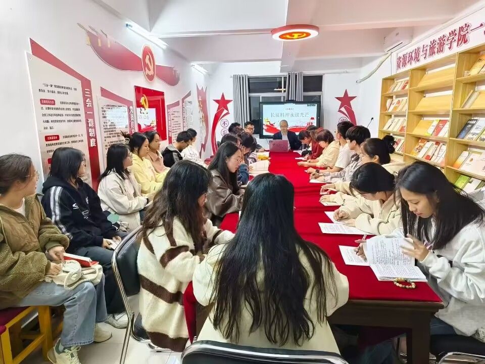 (资源环境与旅游学院 通讯员 李金花 )2024年10月31日晚上18点30分,湖北文理学院资环学院在北区12栋“一站式”学生服务中心开展了以“长征精神永放光芒”为主题的党课。本次党课主讲人为孙小舟院长,第三十二期党校全体成员参加本次党课。