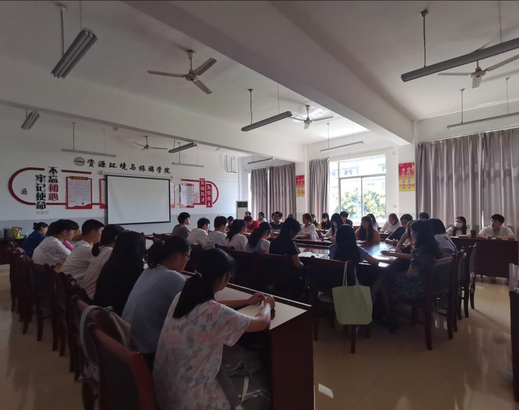 (资源环境与旅游学院 通讯员 胡清 )资源环境与旅游学院于9月9日中午在北区2栋331教室召开迎新工作总结与后续工作布置会议,党委副书记鲁宏图、学工办主任李海、团委书记李宇出席本次会议,全体学生干部参加会议。