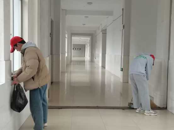 春风浩荡,春雨滂沱。下午14时,志愿者们提前在北区8栋教学楼门前集合,活动开始前负责人郭维靖为志愿者们发放小红帽并将志愿者分成四个小组分区打扫教学楼。分配好任务后,志愿者们按照计划拿着抹布和垃圾袋积极前往各自的清洁区打扫卫生。新的学期,同学们期望拥有清洁的环境,公共卫生显得尤为重要,所以大家在此次活动中也格外积极、认真。在活动过程中志愿者们干劲十足,认真仔细地打扫着地面、窗台、楼梯扶手及各种容易积攒灰尘的角落。经过志愿者们一个小时的高效有序的分工合作,整个教学楼焕然一新,干净整洁。最后志愿者们在北区8栋教学楼门前集合并拍照,负责人郭维靖收回小红帽。至此,本次志愿活动圆满结束。