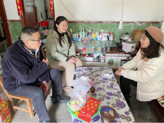 家访中,李雨萌在与李洋舅舅促膝长谈,面对面交流,进一步了解李洋的思想动态、学习进度、生活状况和家庭情况。与此同时,还详细宣传国家和学校资助政策及对学生资助情况,征求李洋舅舅对学校资助工作的意见和建议,并为李洋送去慰问品、温暖鼓励和新春祝福,同时叮嘱李洋要利用好假期充实提升自己,勉励她要自信自强,感恩奋进,用知识改变命运,用责任担当未来。家访结束后,李洋舅舅对学院的关心和慰问深表感谢,李洋也纷纷表示定将学院的关爱转化为前进的动力,发奋学习,积极进取,立志成才,将来用知识回报国家,用爱心回报社会,用成绩回报学校。