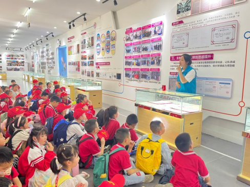 在“格桑花之家”展厅里,讲解员从“含苞”“绽放”“流芳““花语”四个方面,向孩子们介绍了第一批“格桑花”支教团队成立、接力支教及留在雪域高原的感人故事,引导小记者参观了支教队员们留存的泛黄课表、写满的教案及学生送的信件等珍贵纪念物品。