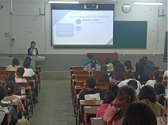 (资源环境与旅游学院 通讯员 王浩凯)为了帮助学生更好地了解考研,增强同学们对考研的自信和动力,资环学院于2023年5月8日下午6点30分在北区四栋教学楼403教室举办了资环学院考研经验交流会。本次交流会有副院长孙小舟,辅导员李宇和刘佳,龚元弘扬等同学参与。