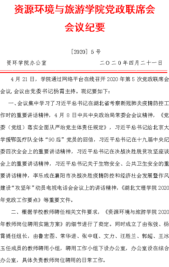 党政联席会会议纪要 [2020]5号
