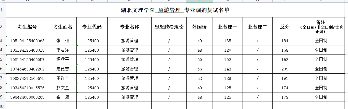 湖北文理学院2024年旅游管理专业硕士研究生调剂考生复试成绩及拟录取名单公示