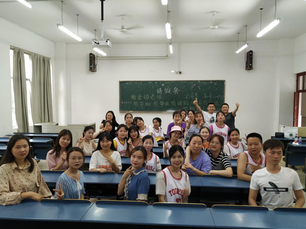不久后,大家都即将奔赴各自的人生旅程,母校情深,师恩难忘,母校赋予了大家满怀拼搏的豪情,老师们的点滴耕耘,为同学们插上了腾飞的翅膀;怀感恩之心,铭记师恩,传承长财情怀,并以此为毕生的财富。班会最后,同学们请姜大伟老师签上请假条,虽然心里十分不舍,但姜大伟还是不得已签下了“同意”,姜大伟感叹到,时间虽然过去了,但旅游管理1511班这个大家庭的美好回忆却是真实存在的,不同意批假,是希望大家能够不忘初心,湖北文理学院、资源环境与旅游学院、旅游管理1511班永远都在大家心中,希望各位能带着老师与同学的祝福与期望,带着自己的努力与拼搏去创造更加美好的明天并祝福毕业生们都能有一个精彩的未来。
