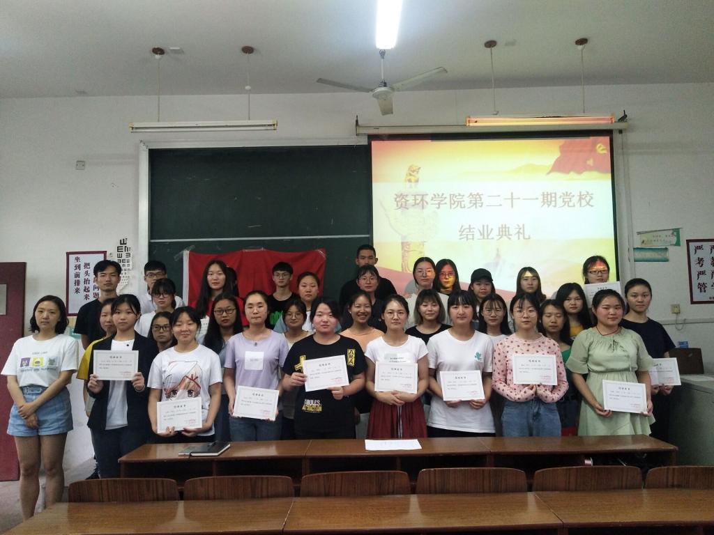 (资源环境与旅游学院 通讯员 李子欣)资环学院第二十一期党校结业典礼于2019年6月12日下午6点在北区4栋407教室举行。参与此次活动的人员有资环学院团委书记,17、18级辅导员罗漪,第二十一期党校负责人李虔、江明利以及全体入党积极分子。