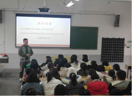 (资源环境与旅游学院 学生通讯员 李子欣 )为了让学生对疫情后旅游酒店业发展有清楚的认知,对未来职业发展有明确的规划,资源环境与旅游学院于2020年12月3日邀请了上海卓越铂尔曼大酒店副总经理万涛和上海乔迈企业管理咨询有限公司龚承志来校给旅游(酒店)管理专业学生授课交流。此次交流大会于下午2点在北区6栋101教室举行。参加此次活动的人员还有资环学院旅游管理专业系主任龙雨萍老师、系副主任汪胜蓝老师,2019级酒店管理专业、2018级旅游管理专业和2011级旅游管理专业学生。