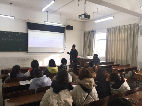 李权国老师从地理科学专业介绍、院校选择,学院近三年地理科学专业学生考研情况和我校硕士点介绍四个方面做了详细的介绍,让学生对地理科学专业的考研情况有了初步的了解。