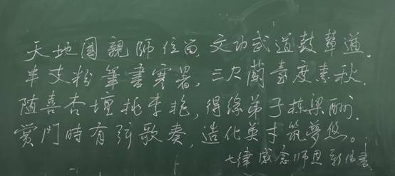 (通讯员:王川)为响应学校举办湖北文理学院第二届教师粉笔字板书大赛的要求,展现学院教师教学基本功,4月26日下午资环学院教学委员会在N6-305教室组织了教师粉笔字板书大赛。学院教师文力、蒋小荣、杨剑和毛新伟参加了本次比赛。以下是比赛作品展示: