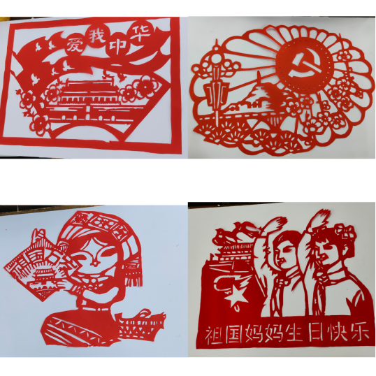 剪纸实践环节,在老师的指导下,同学们用剪刀剪出天安门巍峨的城楼、迎风飘扬的国旗和熠熠生辉的党徽,用刻刀刻画出“爱我中华”“祖国妈妈生日快乐”“祖国万岁”等真挚的祝福语。