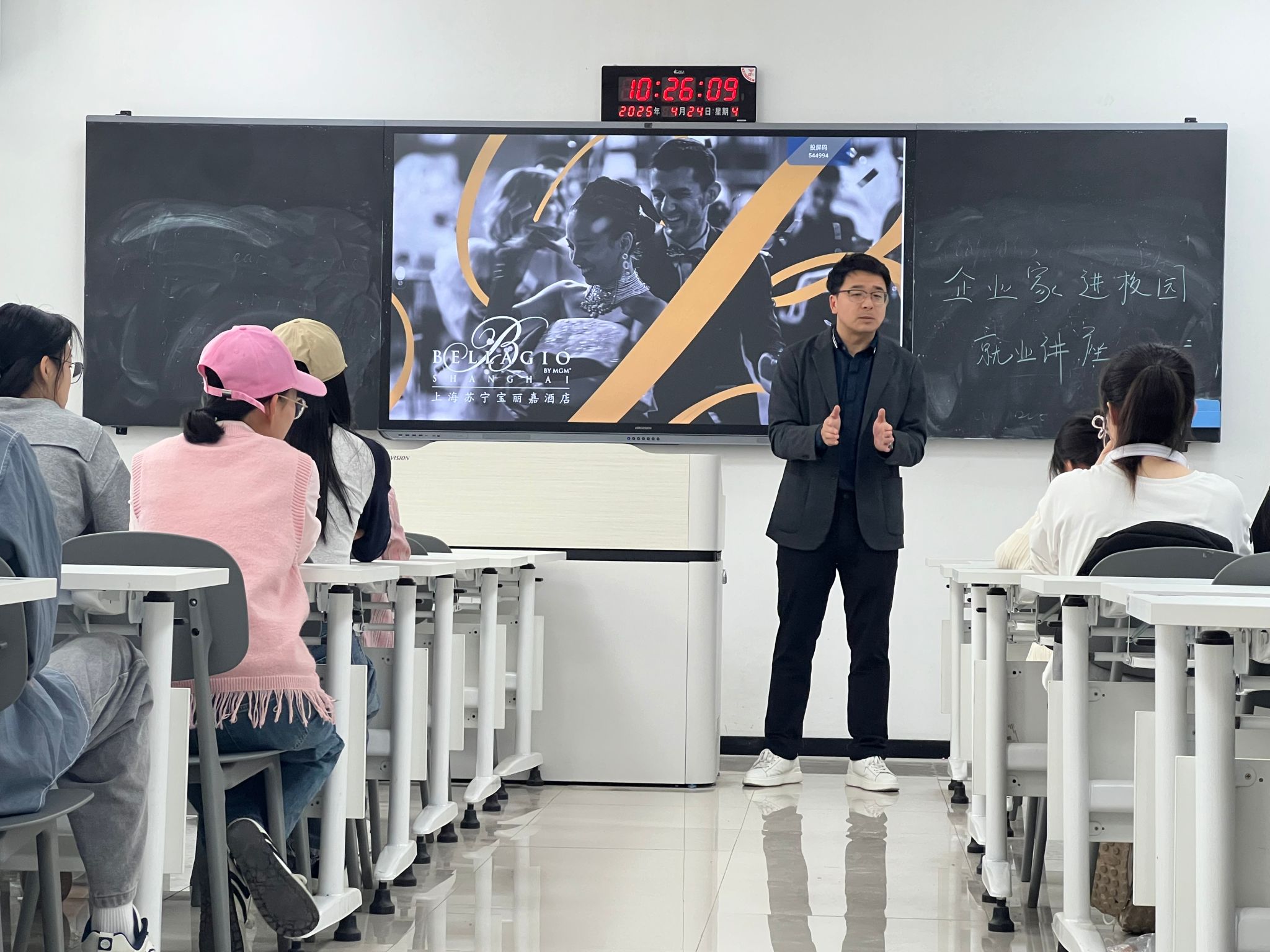讲座以“校企协同赋能职业成长”为主题,陈总结合自身丰富的行业经验,围绕洲际酒店集团旗下英迪格酒店、上海王宝和大酒店等标杆企业,系统介绍了酒店行业的岗位设置、人才培养、薪酬待遇以及晋升路径,并强调数字化运营能力与跨文化沟通技巧对职业发展的重要性。同时,他还通过行业数据对比分析了国内外酒店品牌对“复合型人才”与“创新服务意识”的迫切需求,建议同学们积极考取相关专业资格证书以提升就业竞争力。