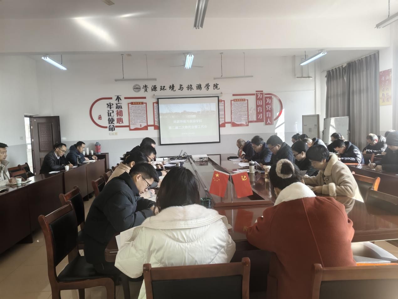 (通讯员 邓洁屹)2025年12月25日,资源环境与旅游学院第二届二次教代会暨工代会在学院 N2-331会议室隆重召开。学院领导班子、全体教职工参会。会议由学院党委副书记、分工会主席黄文主持。