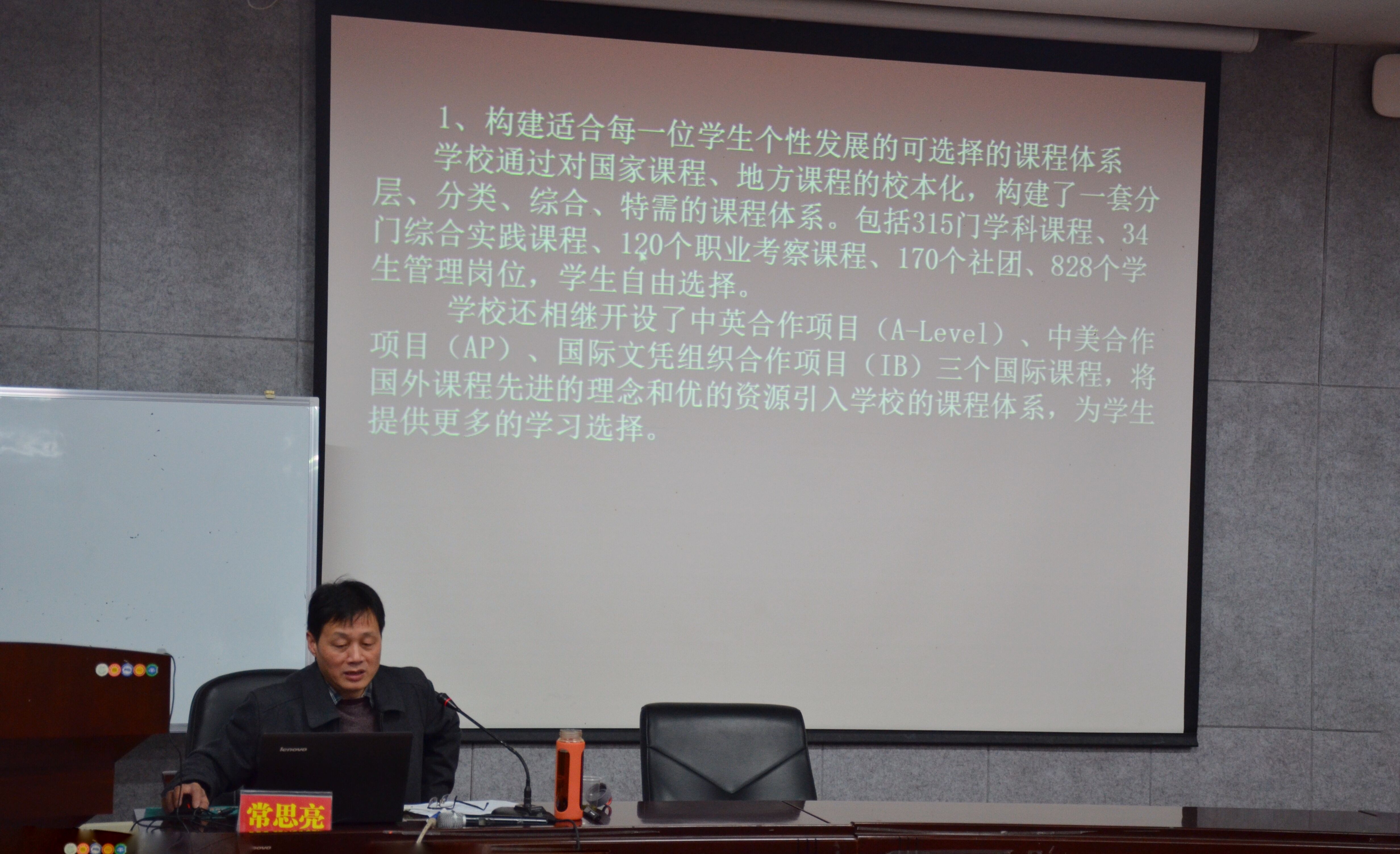 首先,常思亮向学员们介绍了学校特色建设的重要性,并着重分析了“特色学校”和“学校特色”这两个不同的概念。通过结合北京十一中学的课程特色推出了“人无我有”“人有我优”“我有我优”作为学校特色建设的三个层次。