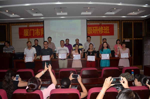 (通讯员 张婉仪)7月12日下午,由文学院承办的福建省厦门市同安区优秀教师高级研修班结业典礼在文学院216学术报告厅举行。湖南师范大学继续教育学院院长马卫平、党委书记张明、副院长吴跃飞、培训科科长张雪梅、文学院党委书记李伶俐、同安区教师进修学校党委书记陈溪水、同安区人民政府教育督导室主任曾国棉以及培训班全体学员参加此次结业典礼。典礼由文学院副院长彭万福主持。