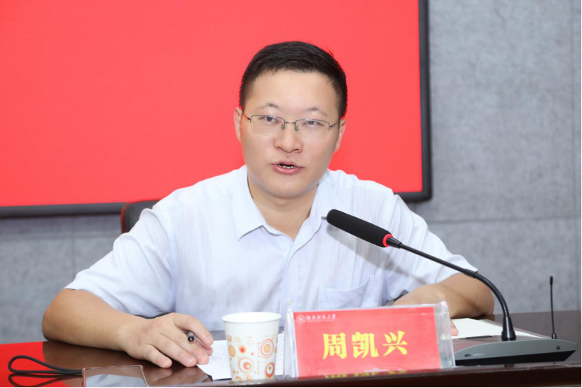 周凯兴代表文学院致欢迎辞。他对学员们的到来表示热烈欢迎,并简要介绍了学校办学历史、办学成就和学院培训特色。他祝愿全体学员在此次培训期间能学有所悟、学有所得、学有所成。