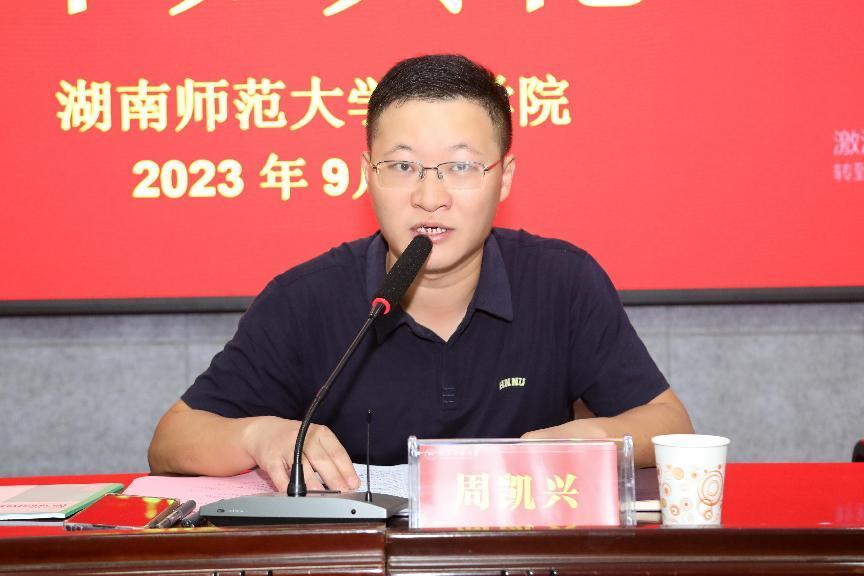 周凯兴代表学院致欢迎辞。他对学员们的到来表示热烈欢迎,并简要介绍了我校85年的办学历史、办学规模、办学成就、师资力量、培训工作等。他希望全体学员在为期半月有余的培训期间能够勤于思考、多加交流、共同进步,并鼓励学员再接再厉,为党和人民的教育事业添砖加瓦。