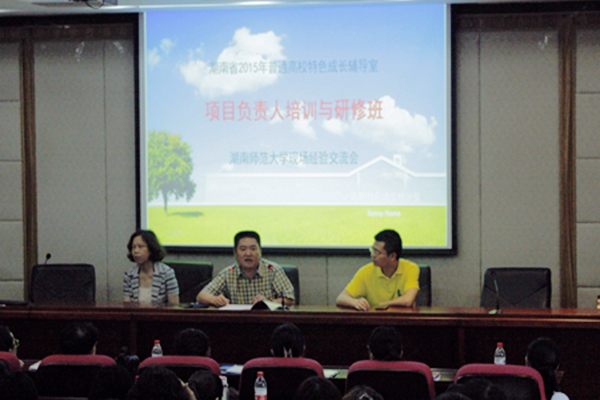 (通讯员 王开乾)6月3日下午,湖南省特色成长辅导室项目负责人培训与研修班现场经验交流会在文学院216学术报告厅举行。学生工作部副部长申美玲、文学院党 委副书记熊剑峰与147名来自湖南省各高校的特色成长辅导室项目负责人进行了经验分享。文学院党委书记李伶俐出席活动,此次交流会由校心理健康教育与咨询 中心主任余洁主持。