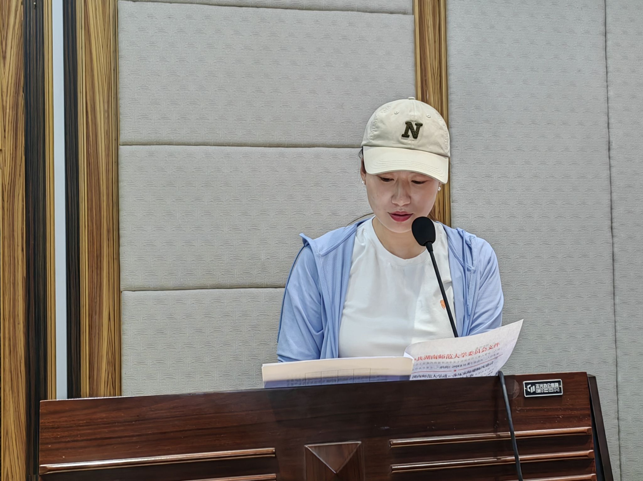 党委副书记刘宓蜜领学了《湖南师范大学进一步压实师德师风建设主体责任实施方案》和《湖南师范大学违反教师职业道德行为处理办法》。