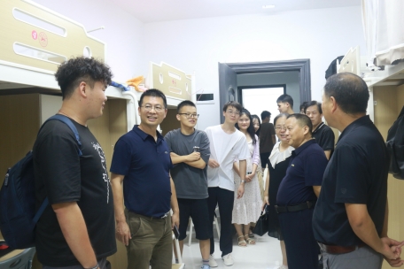 (通讯员吕依婷陈爽蔡忻瑶)9月9日晚,文学院领导分别在桃花坪和咸嘉湖校区开展2024级研究生与本科生下寝迎新工作。文学院院长肖百容、党委书记熊剑峰、教学副院长岳凯华、党委副书记刘宓蜜、副处级专职组织员夏云飞及学工办、研究生办老师一同走访咸嘉湖本科生宿舍和桃花坪校区研究生宿舍,为学生送去新学期的关心与问候。