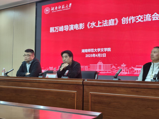4月2日,文学院在216报告厅成功举办电影《水上法庭》创作交流会。活动通过影片试映、主创对话与学术研讨等形式,深入探讨了司法题材影视作品的创作逻辑与社会价值。中国电影家协会理事、民族电影工作委员会副会长、潇湘电影集团著名编导韩万峰携主演匡新立亲临现场,与文学院师生共话艺术创作与时代使命的融合之路。