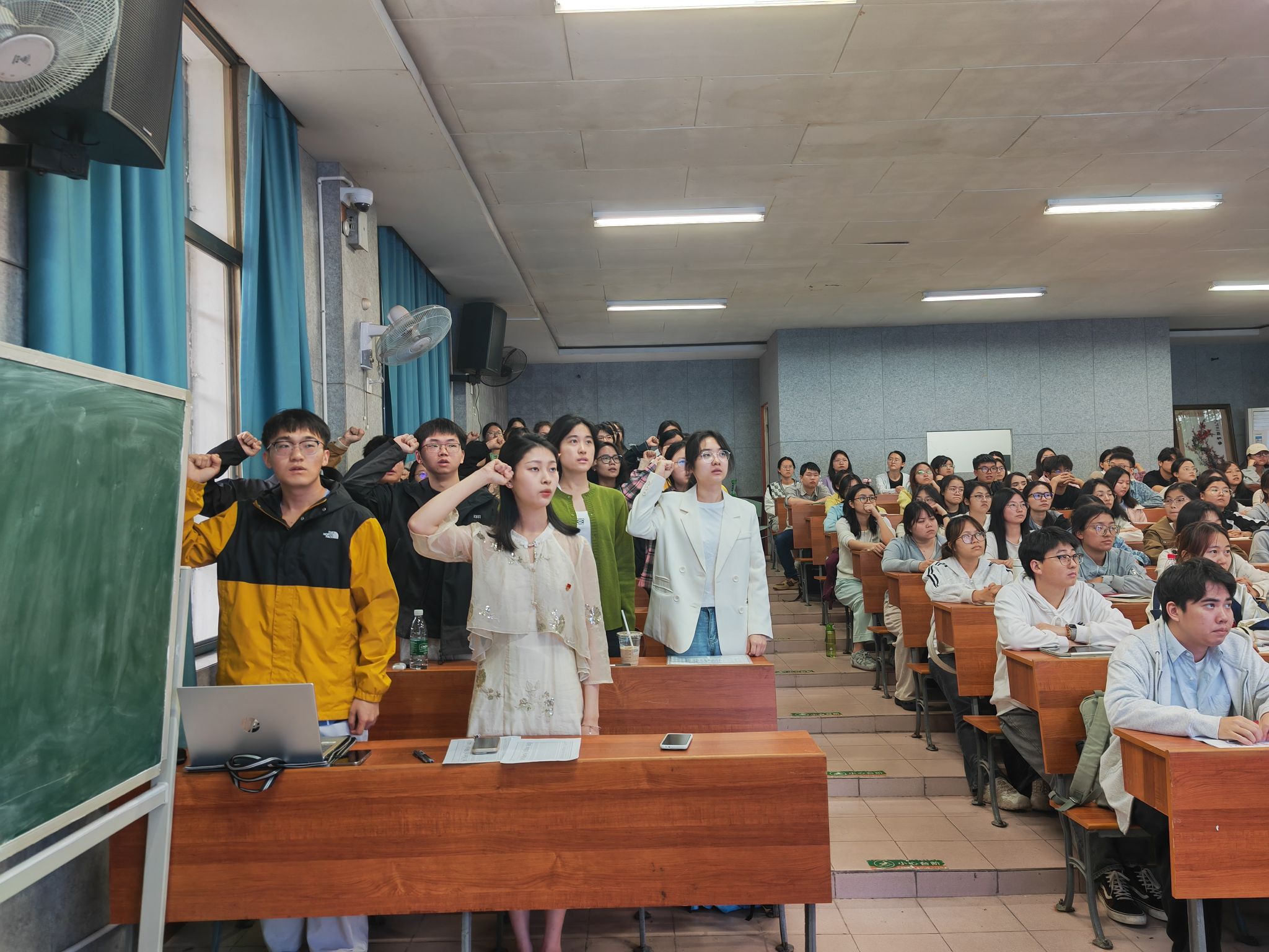 4月24日中午,文学院分党校第78期入党积极分子培训班开班仪式暨新发展党员集体宣誓大会在文渊楼217教室举行。学院党委副书记刘宓蜜、学院专职组织员夏云飞参加,仪式由学工办主任周灿老师主持。文学院全体新发展预备党员及第78期入党积极分子培训班全体学员参加开班仪式。