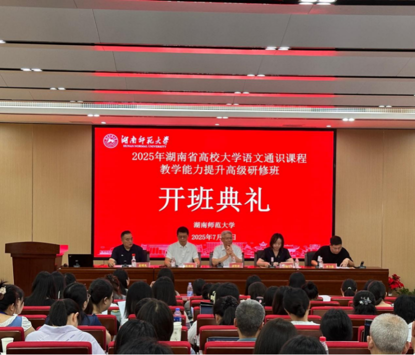 7月14日,由湖南省高等学校师资培训中心主办、文学院承办的2025年湖南省高校大学语文通识课程教学能力提升高级研修班开班典礼在学院216报告厅举行。我校副校长唐贤清,湖南省高等学校师资培训中心副主任李灿华,文学院副院长夏曙光,大学语文教研室主任牟方磊,及来自湖南省60所高校的从事大学语文或中文通识课程相关教学和科研的120位教师参加活动,典礼由文学院党委书记熊剑峰主持。