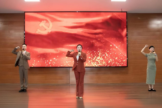 宣讲表演环节,来自湖南烈士公园的演职人员与文学院志愿宣讲员通过情景讲述、艺术展演等形式,生动再现了左权、陈为人、黄公略等革命烈士的光辉事迹。文学院合唱团倾情献唱,现场气氛庄重热烈。活动在全体合唱《有我》的歌声中达到高潮。结束后,领导老师与演职人员合影留念。