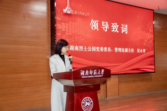 活动在《丰碑永铸颂丹魂》宣传短片播放后正式开始。熊剑峰在致辞中表示,要以新时代党的创新理论为引领,以红色文化为思想根基,推动高校思政教育提质增效,着力培养让党放心、爱国奉献、勇担民族复兴重任的时代新人。吴小芳提到,湖南烈士公园作为全国烈士纪念建筑物重点保护单位及湖南省首个“国家重点公园”,将持续深化与高校合作,为青年学生提供集观展、观演、研讨于一体的浸润式红色文化教育服务。