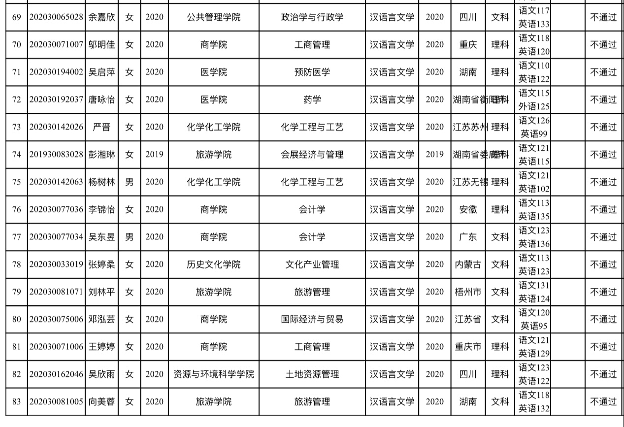 本次我院共收到83名学生提交的转专业申请,经审查,有王俊钦等59名同学通过报名资格审查,现将名单予以公示。公示期为2020年12月 31日至20201年1月4日。
