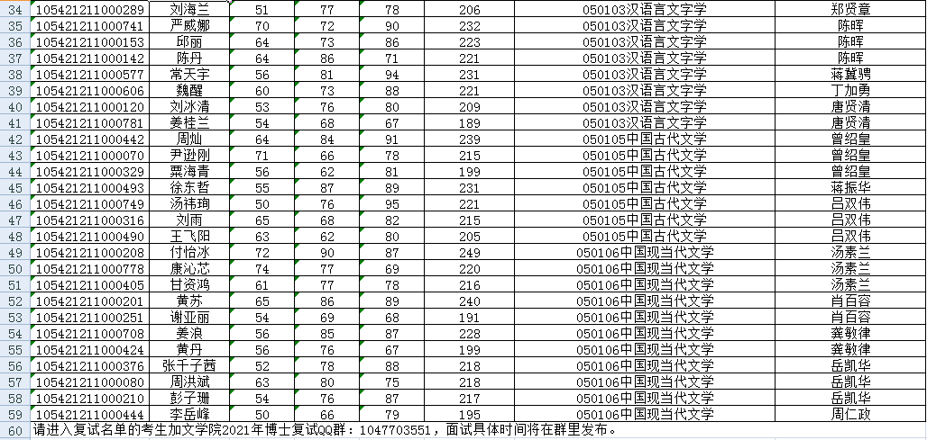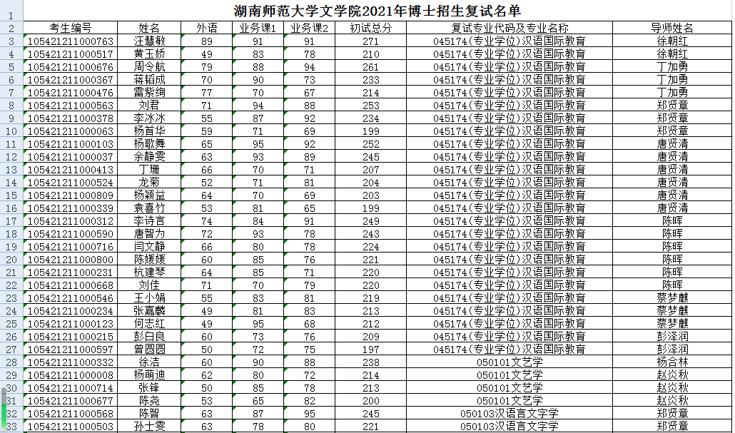 湖南师范大学文学院2021年博士招生复试名单
