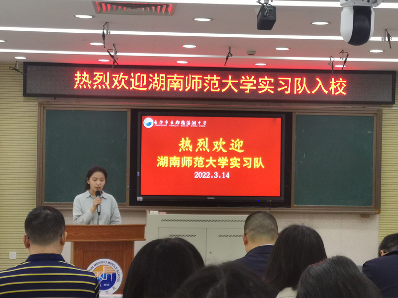 (通讯员 王之然 聂云洁 崔慧敏)3月14日上午,长郡梅溪湖中学在科技楼104教室举行对我院和教育科学学院实习队的欢迎仪式。王旭副校长、何永清主任、彭向清主任、黄星河主任、文学院徐超老师、教科院罗建国教授、相关负责老师和实习队全体成员参加此次活动。