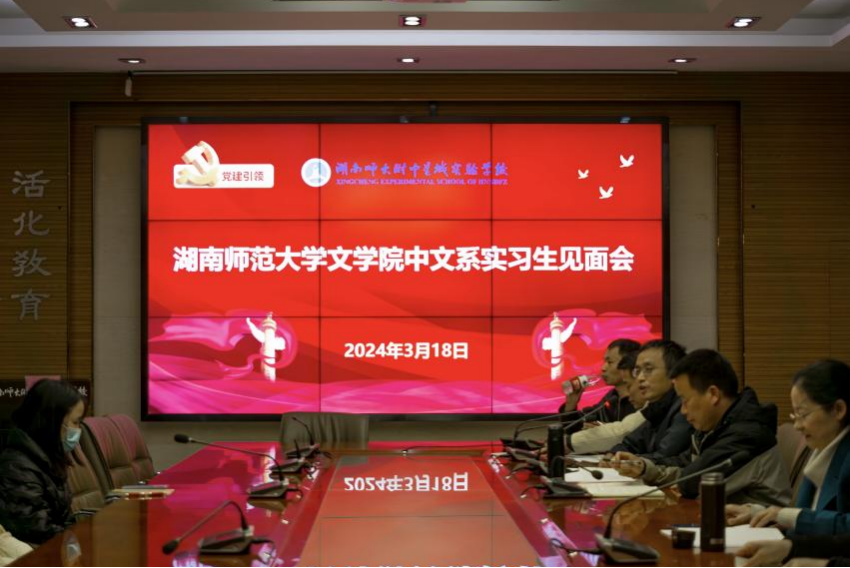 (通讯员罗灿姜齐家徐佳怡)3月18日下午,文学院2021级赴湖南师大附中星城实验学校实习队于该校会议室举行见面会。仪式由星城实验学校副校长梁平主持,教学处主任姚光荣、工会主席李凌峰等校方代表以及实习队指导老师张幼军和实习队全体成员与会。