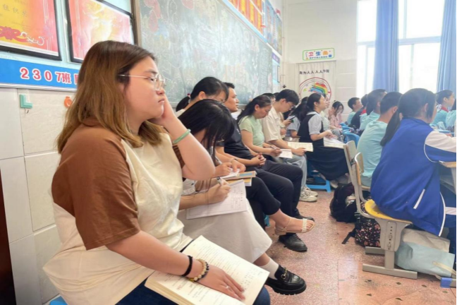 图为领导、老师及实习队员参与听课