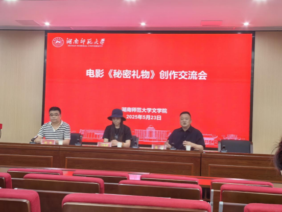 (通讯员段溢林)5月23日,文学院在216报告厅成功举办电影《秘密礼物》创作交流会,本次展映交流是2025年麓山青年电影展长片展映活动之一。活动通过影片展映、主创对话与学术研讨等形式,共同探寻电影艺术的魅力与创作背后的深层蕴含。湖南潇湘青春影业有限公司副总经理徐海与电影导演马瑜遥亲临现场,与文学院师生共同探讨电影创作如何观照人生成长,探寻信念初心。