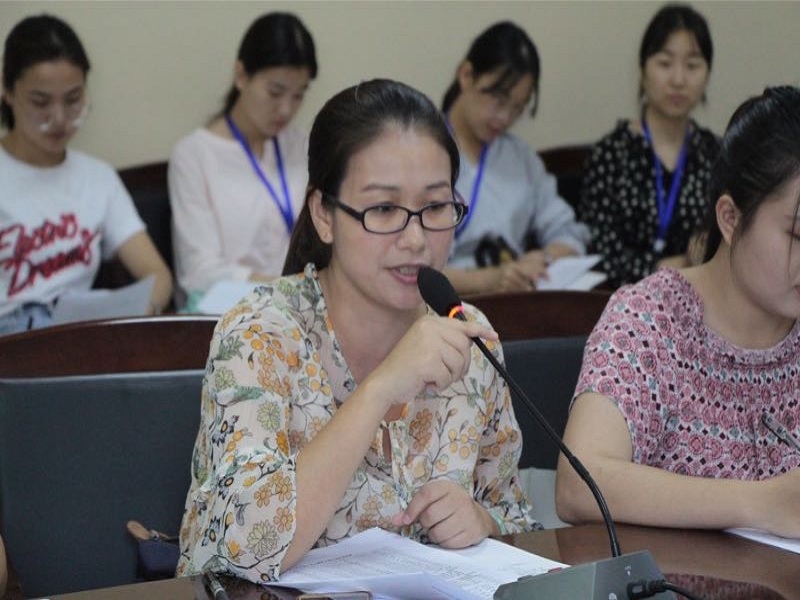 随后,我院李华老师作为本次实习队的指导教师代表进行了发言。她表示非常感谢博才校方为实习队员提供了一个宝贵的平台,希望实习队员们能够在本次实习实践中有所收获,也希望博才校方各位优秀且经验丰富的老师能够向实习队员们分享经验。