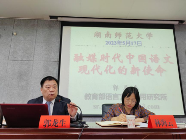 (通讯员钱嘉琦)5月17日,教育部语言文字应用研究所研究员、社会语言学与媒体语言研究室主任、博士生导师郭龙生做客文学院“智慧之光”学术名师系列讲座,在文学院216教室开展题为“融媒时代中国语言现代化的新使命”的学术讲座。讲座由文学院林海云副教授主持,语言学及应用语言学等专业研究生到场聆听。