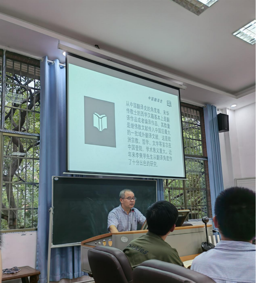 (通讯员 谭湘琼)9月22日下午,广东外语外贸大学中文学院院长、云山杰出学者陈恩维教授应邀在文学院古代文学教研室开展了题为“明末清初西学汉籍及其学术文化意义”的精彩讲座。本次讲座由中国古代文学学科负责人蒋振华教授主持,古代文学专业的多位老师、数十位研究生参加。