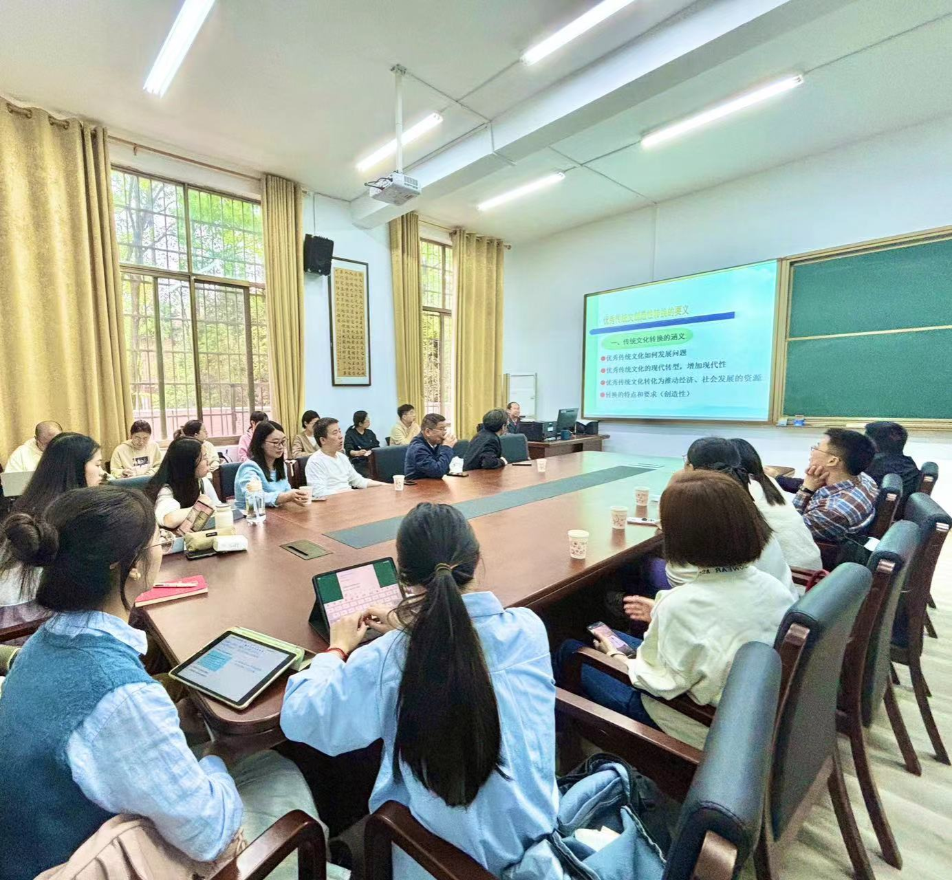 讲座伊始,蒋冀骋教授致欢迎词。他介绍了段超教授在历史学、民族学以及非遗传承保护等领域的成就和贡献。段超教授从自身求学经历与湖湘文化导入讲座,讲述了中华优秀传统文化的重要价值,拉近了与在座师生的距离。接下来,段教授从“优秀传统文化创造性转换要义”、“优秀传统文化创新性发展要义”、“创造性转换与创新性发展的关系”和“推动创造性转换和创新性发展实践”四个方面展开,结合自身经历与当下实际,讲述了创造性转换与创新性发展的内涵、原因和条件,分析了文化“两创”之间的关系,并重点剖析了如何推动“两创”实践,鼓励青年教师及研究生们做创新研究并将之转化为研究成果。随后,蒋冀骋教授分享体会感悟,举例说明中国各类文学艺术是如何在创造性转换中创新性发展的,强调了创造性转换与创新性发展对文学研究的重要性。