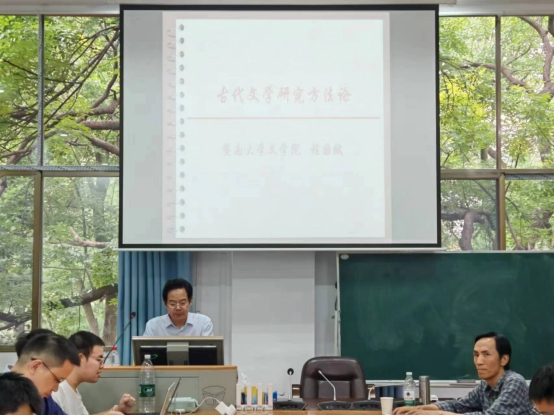 (通讯员史琬怡)5月27日上午,教育部“长江学者”特聘教授、国家“万人计划”哲学社会科学领军人才、明代文学学会副会长、中国俗文学学会副会长,暨南大学文学院程国赋教授应邀在文学院开展题为“古代文学研究方法论”的专题讲座。本次讲座由副院长吕双伟教授主持,陈松青教授、曾绍皇教授、胡海义教授、谢雨情老师、闫梦涵老师、王珂老师及古代文学、古典文献学专业的四十余名研究生参加。