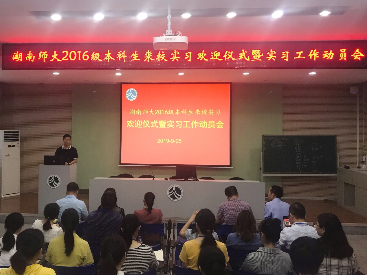 (通讯员 朱旺波 赵美杨)9月25日下午,湖南师范大学文学院赴湖南师大附中实习队在湖南师大附中图书馆报告厅参加实习欢迎仪式暨实习工作动员会。此次会议由湖南师大附中课程与教学处副主任王朝霞主持,湖南师大教师教育学院副院长邓宏霞、湖南师大附中教育教学副校长苏建祥、课程与教学处主任黄宇鸿、德育与学生发展处副主任袁建光、高一年级组长李海汾、高一语文备课组长李小军、湖南师大文学院赴师大附中实习队指导老师文浩出席,参与此次会议的还有来自其他院校的128位实习生。