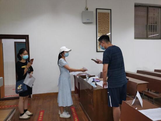 从上午8:00开始,阔别文学院九个月的学生陆陆续续前来报到。记者看到,报到现场井然有序,返校学生严格按照流程办理返校手续。除要出示湖南居民健康卡(“绿码”)外,还必须出示由本人和家长签字的14天体温健康表,并登记个人信息。