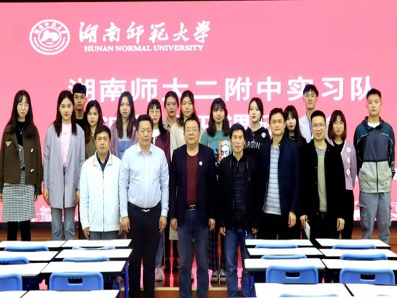 接着,实习队队长张芃葳从实习前期准备、语文教学和班主任工作、宣传工作等方面对实习工作进行简要汇报。二附中党总支书记余柏青和湖南师范大学文学院副院长彭万福做总结致词,他们肯定了实习队员的付出与成长,对实习队员的未来表示美好的祝愿。
