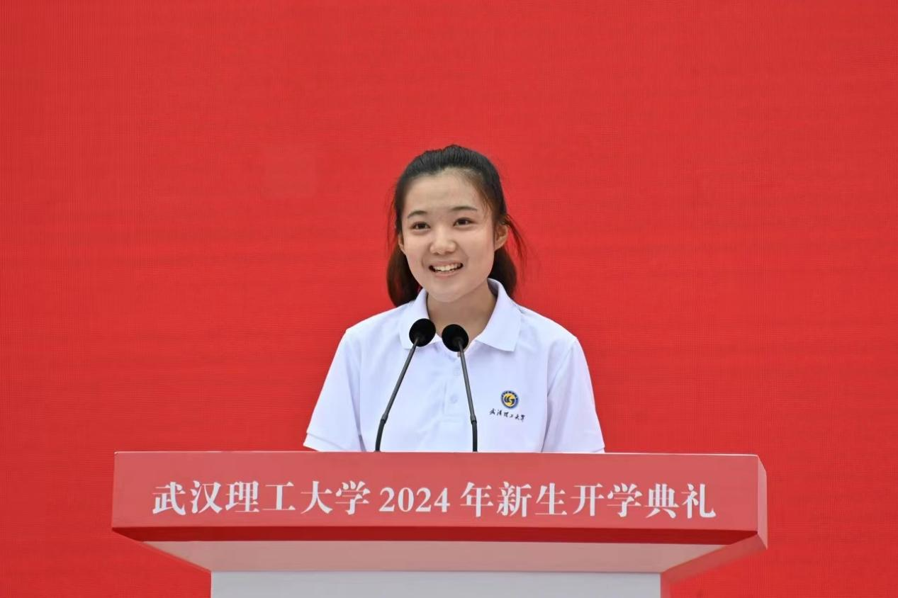 丹桂飘香秋风送爽,龙腾盛世月满乾坤。9月13日上午,武汉理工大学2024级新生开学典礼在南湖校区体育场隆重举行。万余名新同学加入武汉理工大家庭,一片朝气蓬勃、欣欣向荣。我院工商管理类2408班迟亦童同学作为本科新生发言代表在典礼上发言。